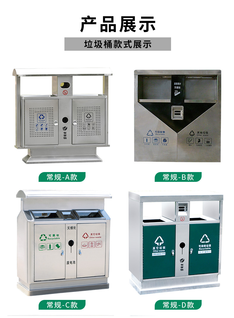 【品名】三分類垃圾桶  【品牌】 中星  【材質(zhì)】?jī)?yōu)質(zhì)鍍鋅板  【內(nèi)膽】鍍鋅板、不銹鋼  【制作工藝】選用優(yōu)質(zhì)不銹鋼鋼板裁剪、壓制、折彎后再焊接而成型  【噴涂工藝】垃圾桶經(jīng)磷化噴砂處理后采用戶...