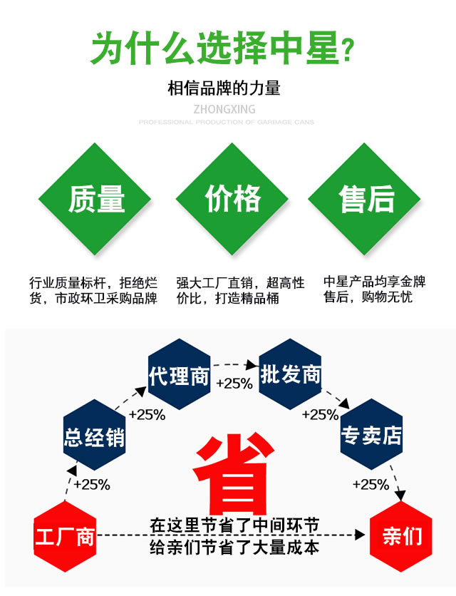 【品名】三分類垃圾桶  【品牌】 中星  【材質(zhì)】?jī)?yōu)質(zhì)鍍鋅板  【內(nèi)膽】鍍鋅板、不銹鋼  【制作工藝】選用優(yōu)質(zhì)不銹鋼鋼板裁剪、壓制、折彎后再焊接而成型  【噴涂工藝】垃圾桶經(jīng)磷化噴砂處理后采用戶...