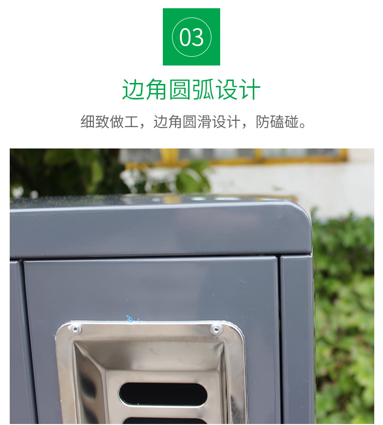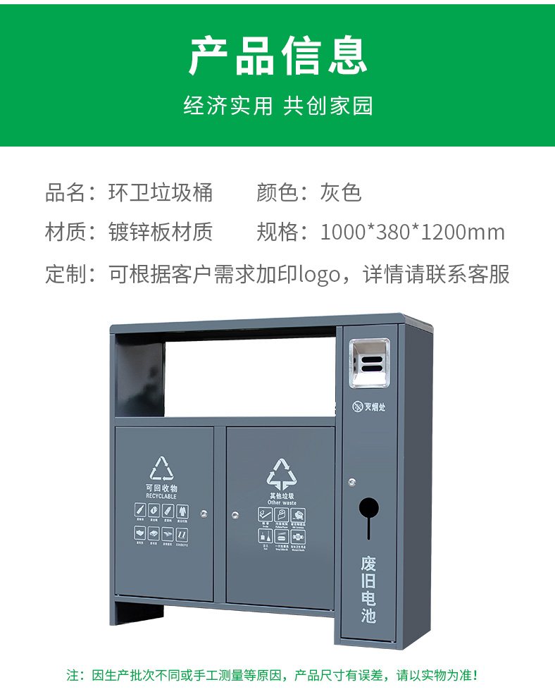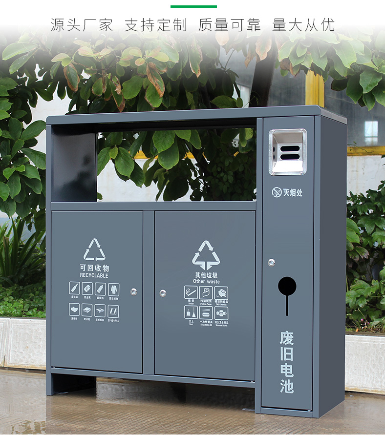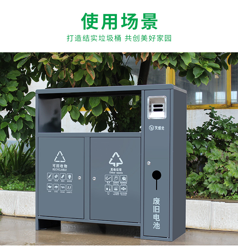 【品名】三分類垃圾桶  【品牌】 中星  【材質(zhì)】?jī)?yōu)質(zhì)鍍鋅板  【內(nèi)膽】鍍鋅板、不銹鋼  【制作工藝】選用優(yōu)質(zhì)不銹鋼鋼板裁剪、壓制、折彎后再焊接而成型  【噴涂工藝】垃圾桶經(jīng)磷化噴砂處理后采用戶...