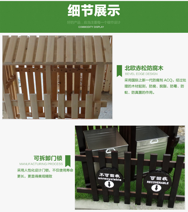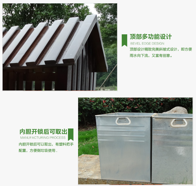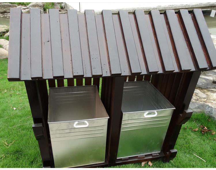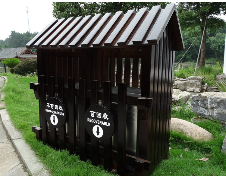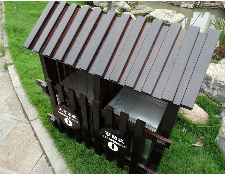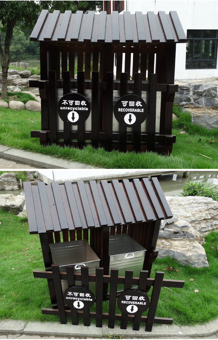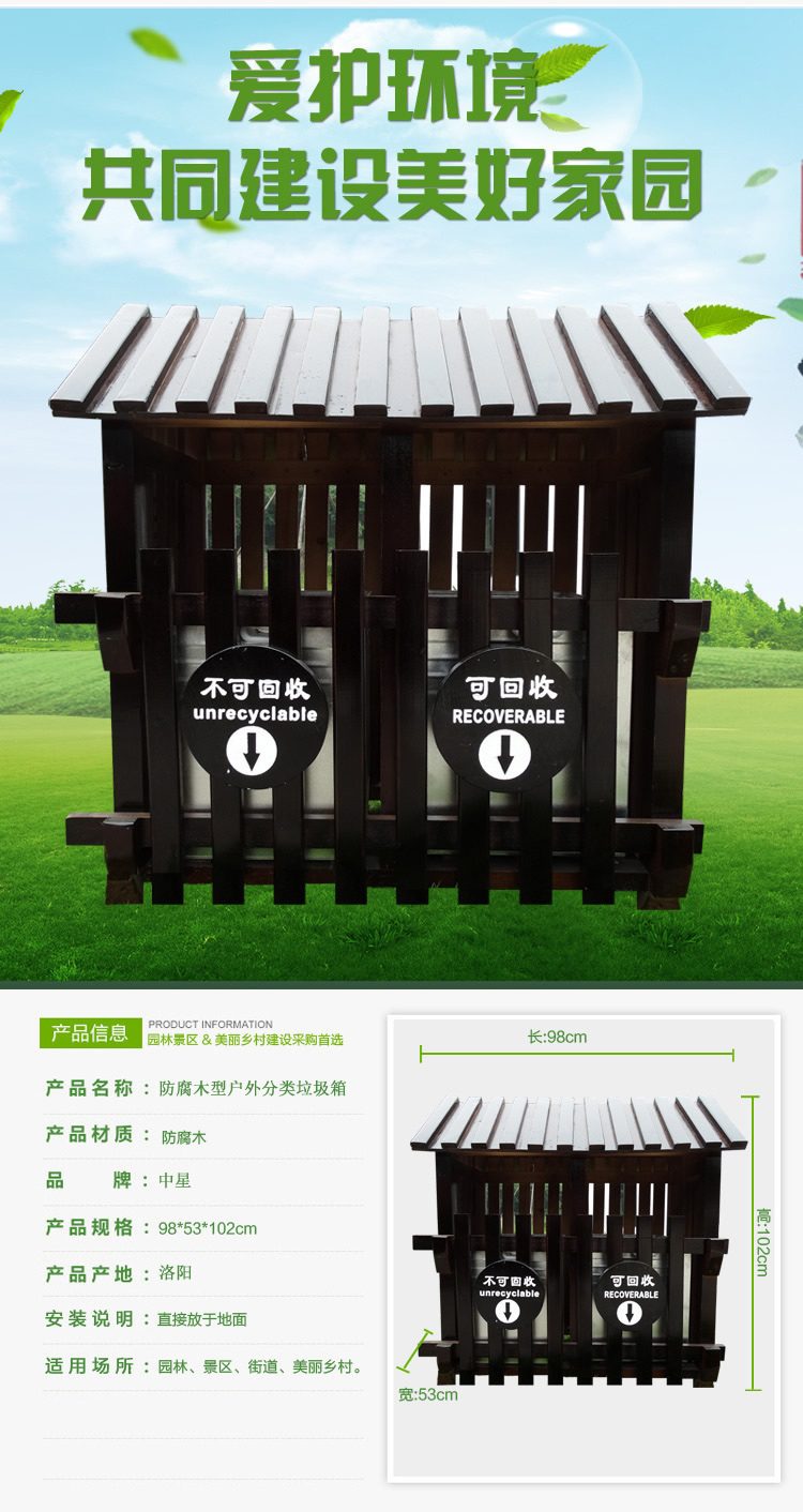 ZX-FFM1002防腐木型戶外分類垃圾箱