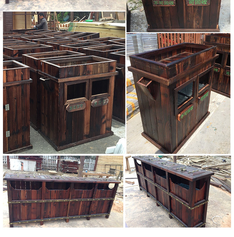 ZX-FFM1006防腐木型戶外分類垃圾箱
