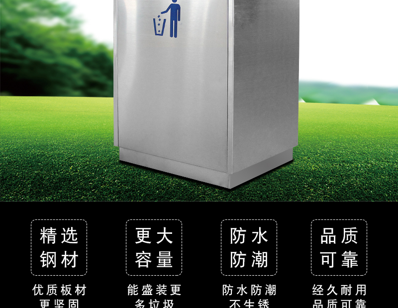 【品名】三分類垃圾桶  【品牌】 中星  【材質(zhì)】?jī)?yōu)質(zhì)鍍鋅板  【內(nèi)膽】鍍鋅板、不銹鋼  【制作工藝】選用優(yōu)質(zhì)不銹鋼鋼板裁剪、壓制、折彎后再焊接而成型  【噴涂工藝】垃圾桶經(jīng)磷化噴砂處理后采用戶...