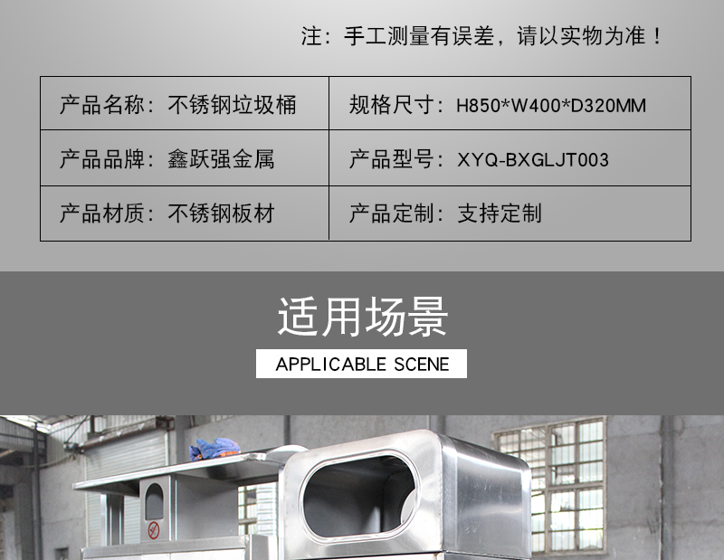 產(chǎn)品名稱 分類不銹鋼垃圾桶 產(chǎn)品型號(hào) ZX-FX111 產(chǎn)品顏色 不銹鋼原色 外桶材質(zhì) 不銹鋼 內(nèi)桶材質(zhì) 鍍...