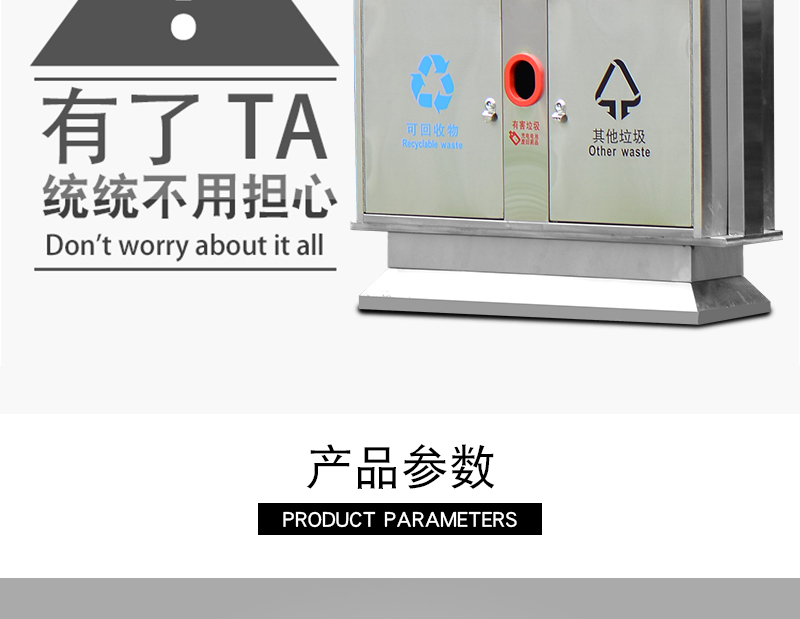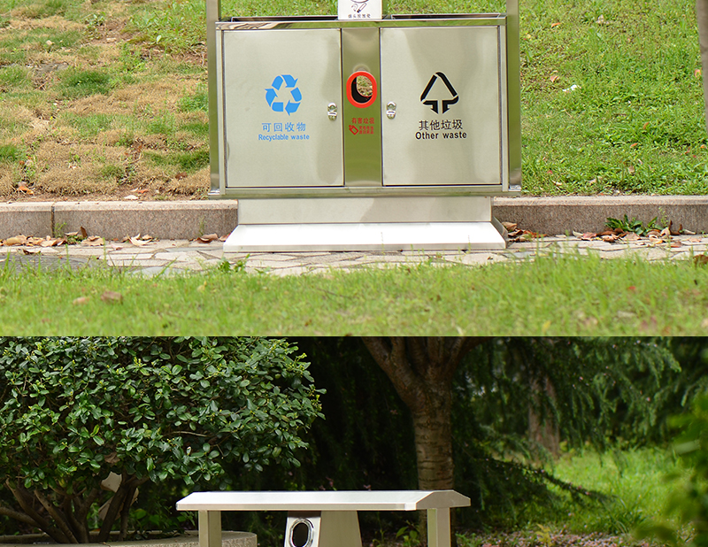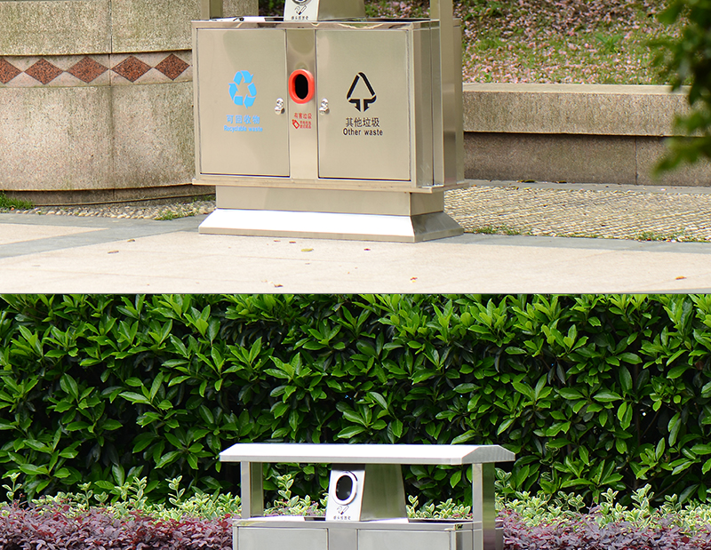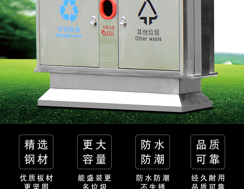 【品名】三分類垃圾桶  【品牌】 中星  【材質(zhì)】優(yōu)質(zhì)鍍鋅板  【內(nèi)膽】鍍鋅板、不銹鋼  【制作工藝】選用優(yōu)質(zhì)不銹鋼鋼板裁剪、壓制、折彎后再焊接而成型  【噴涂工藝】垃圾桶經(jīng)磷化噴砂處理后采用戶...
