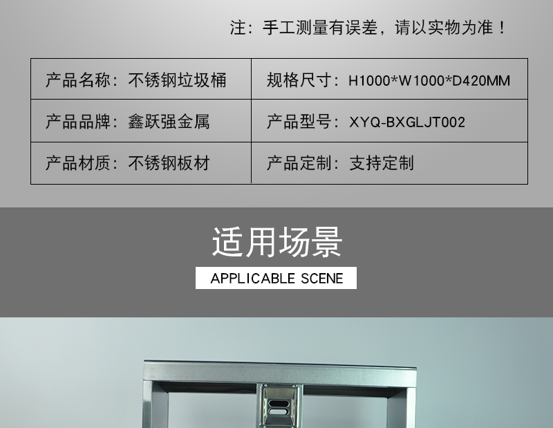 產(chǎn)品名稱 分類不銹鋼垃圾桶 產(chǎn)品型號(hào) ZX-FX111 產(chǎn)品顏色 不銹鋼原色 外桶材質(zhì) 不銹鋼 內(nèi)桶材質(zhì) 鍍...