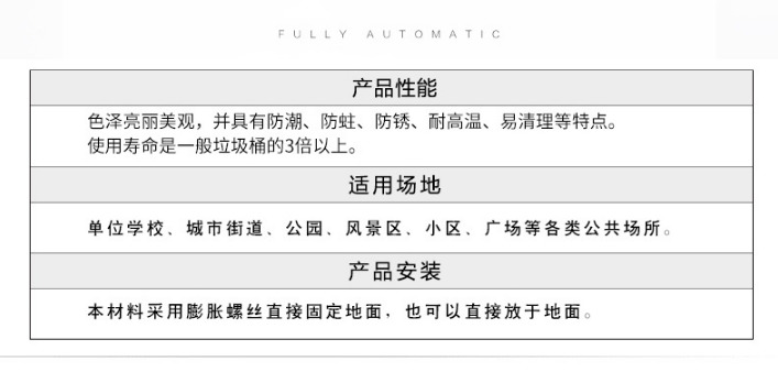 產(chǎn)品名稱 分類不銹鋼垃圾桶 產(chǎn)品型號 ZX-FX111 產(chǎn)品顏色 不銹鋼原色 外桶材質(zhì) 不銹鋼 內(nèi)桶材質(zhì) 鍍...