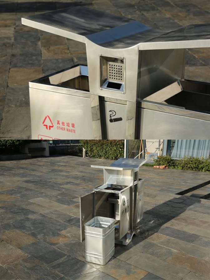 【品名】三分類垃圾桶  【品牌】 中星  【材質】優(yōu)質鍍鋅板  【內膽】鍍鋅板、不銹鋼  【制作工藝】選用優(yōu)質不銹鋼鋼板裁剪、壓制、折彎后再焊接而成型  【噴涂工藝】垃圾桶經(jīng)磷化噴砂處理后采用戶...