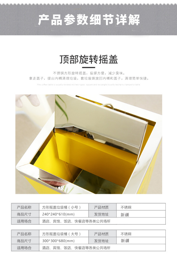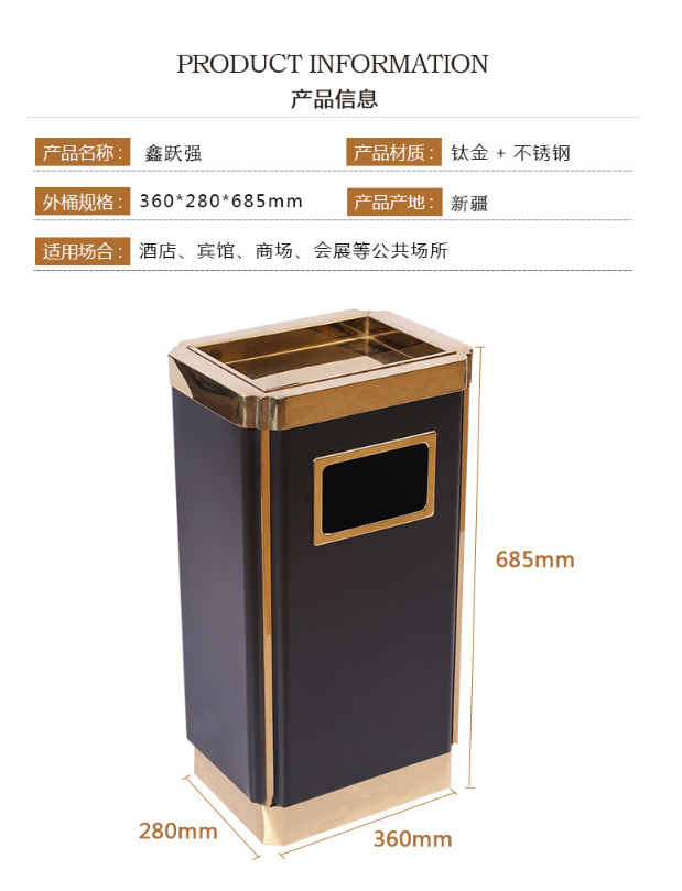 產(chǎn)品名稱 分類不銹鋼垃圾桶 產(chǎn)品型號 ZX-FX111 產(chǎn)品顏色 不銹鋼原色 外桶材質(zhì) 不銹鋼 內(nèi)桶材質(zhì) 鍍...