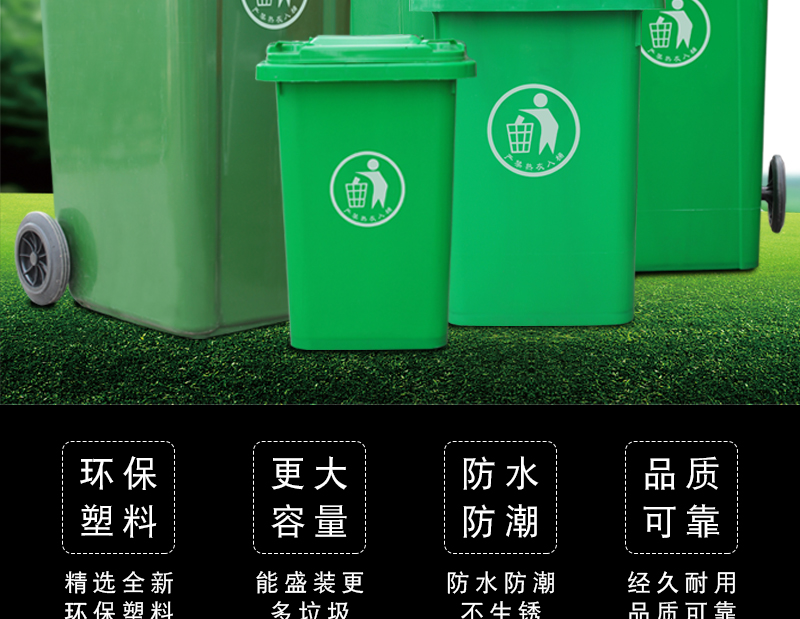 產(chǎn)品名稱 660升塑料垃圾桶 產(chǎn)品型號 ZX-660L 產(chǎn)品顏色 綠色/灰色/藍色/黃色/紅色 外桶材質(zhì) 聚乙 內(nèi)桶材質(zhì) 聚乙烯 容量 660L 建議使用場景 街...