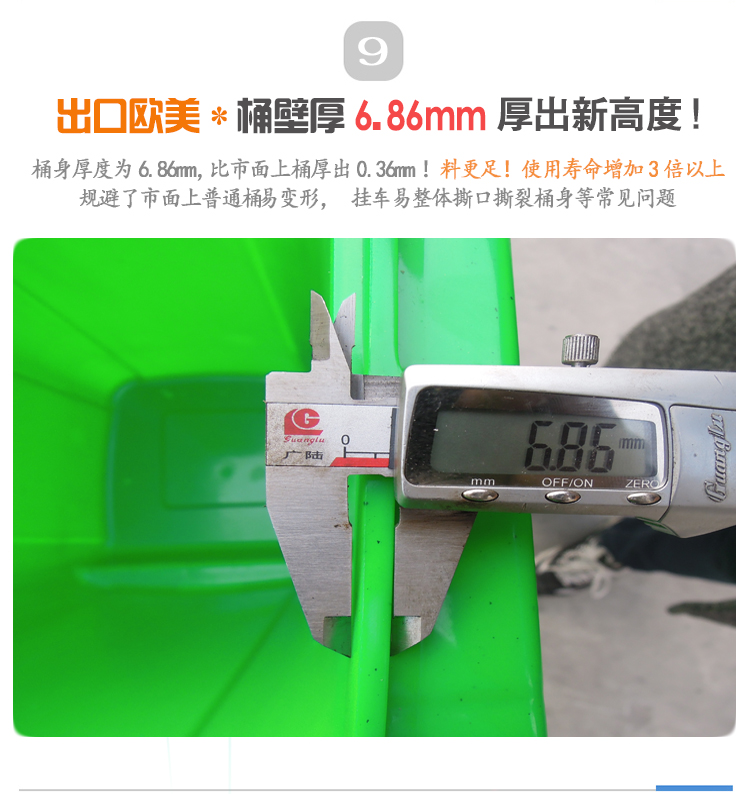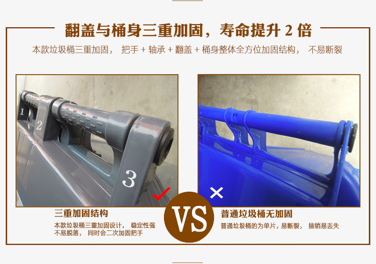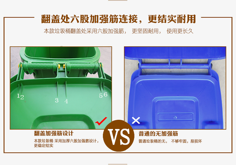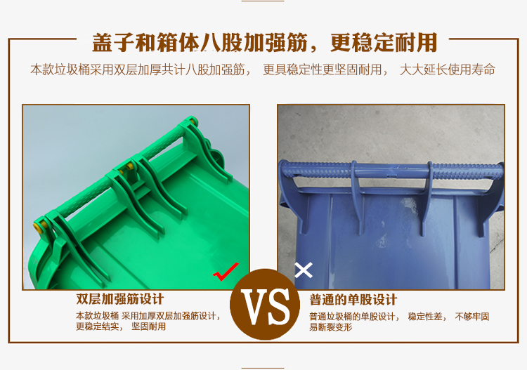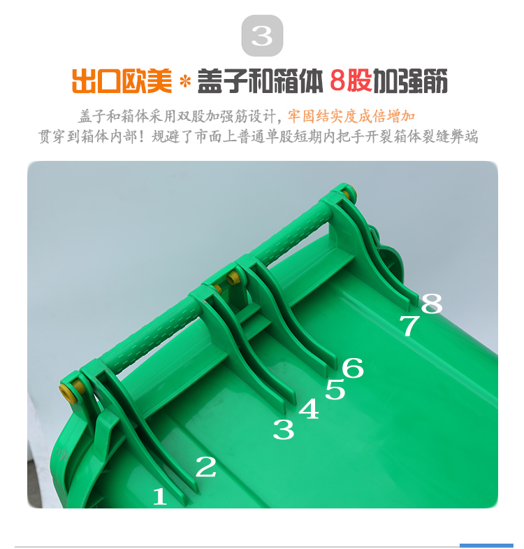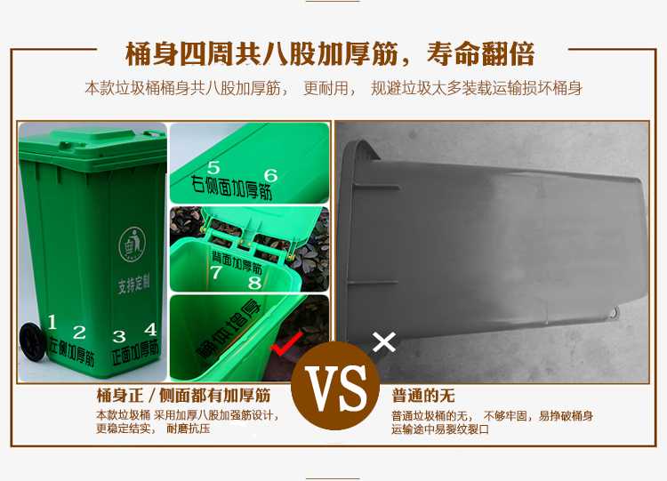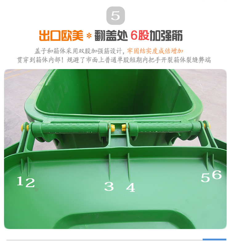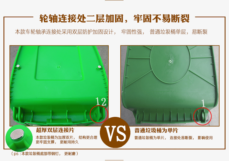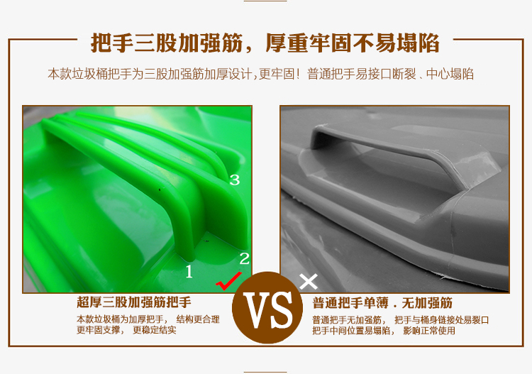 精選材料,源頭把控每一個品質(zhì)環(huán)節(jié),確保高品質(zhì)。產(chǎn)品名稱 660升塑料垃圾桶 產(chǎn)品型號 ZX-660L 產(chǎn)品顏色 綠色/灰色/藍色/黃色/紅色 外桶材質(zhì) 聚乙 內(nèi)桶材質(zhì) 聚乙烯 容量 660L 建議使用場景 街...
