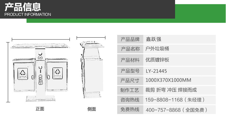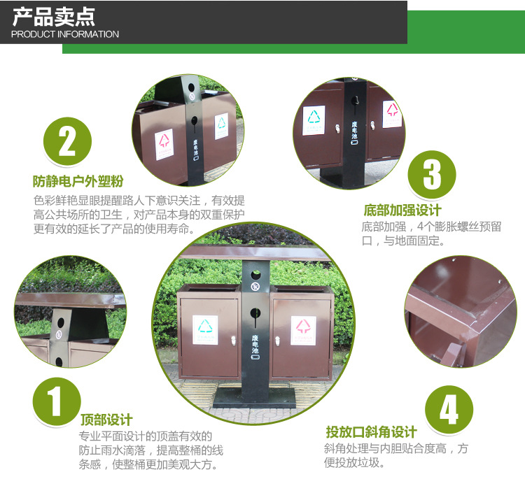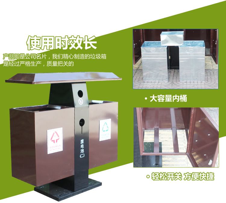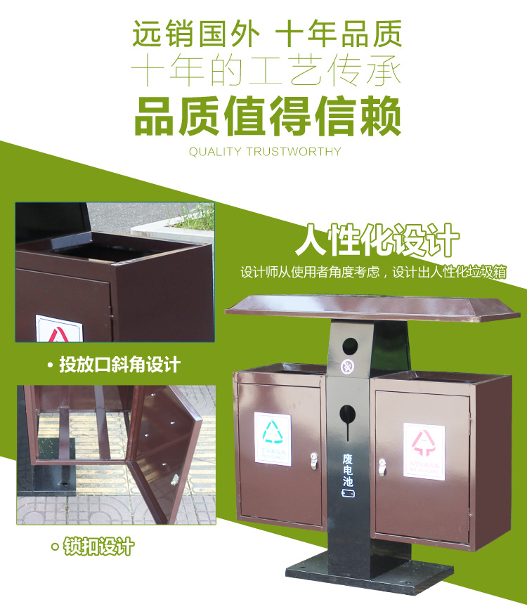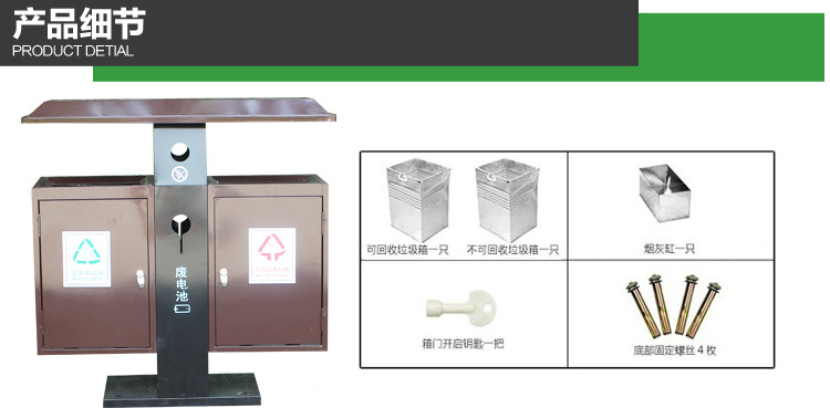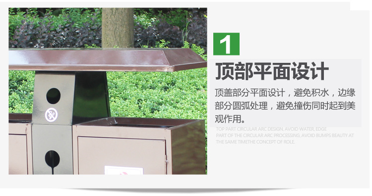 【品名】三分類(lèi)垃圾桶  【品牌】 中星  【材質(zhì)】?jī)?yōu)質(zhì)鍍鋅板  【內(nèi)膽】鍍鋅板、不銹鋼  【制作工藝】選用優(yōu)質(zhì)不銹鋼鋼板裁剪、壓制、折彎后再焊接而成型  【噴涂工藝】垃圾桶經(jīng)磷化噴砂處理后采用戶(hù)...