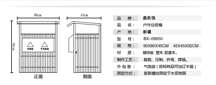 【品名】三分類垃圾桶  【品牌】 中星  【材質(zhì)】?jī)?yōu)質(zhì)鍍鋅板  【內(nèi)膽】鍍鋅板、不銹鋼  【制作工藝】選用優(yōu)質(zhì)不銹鋼鋼板裁剪、壓制、折彎后再焊接而成型  【噴涂工藝】垃圾桶經(jīng)磷化噴砂處理后采用戶...