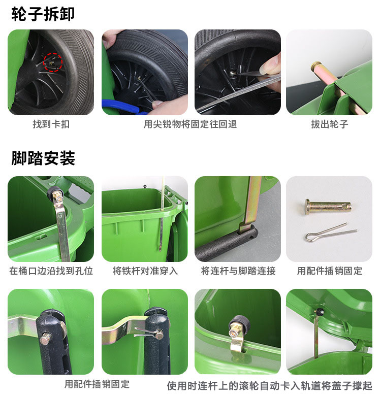 產(chǎn)品名稱 專用掛車塑料垃圾桶 產(chǎn)品型號 ZX-G240L 產(chǎn)品顏色 綠色 外桶材質(zhì) HDPE 規(guī)格(mm) 240L 產(chǎn)品重量 13-15KG 建議使用場景 公園、樓盤小...