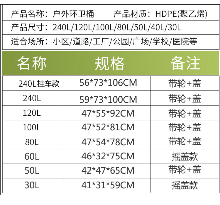 • 產(chǎn)品規(guī)格:100L\120L\240L