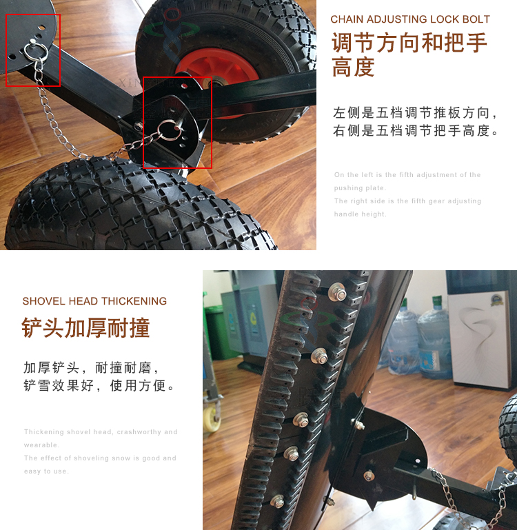 • 產(chǎn)品規(guī)格:總長:140厘米 清雪寬度:<75厘米 清雪高度:<45厘米 輪胎直徑:25厘米 推鏟尺寸:45*75厘米 圓管把手尺寸:40*100厘米 推鏟厚度:1.5-1.8mm