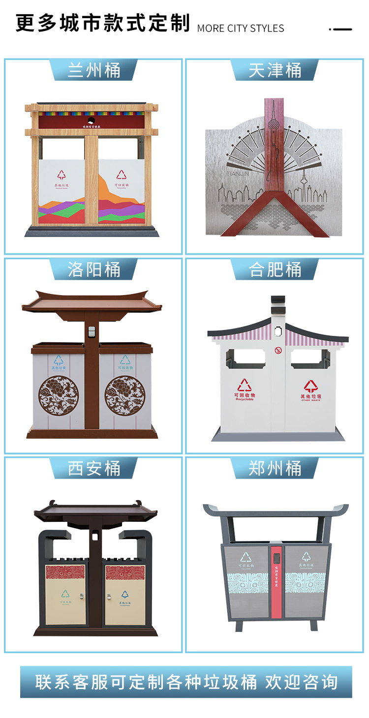 【品名】三分類垃圾桶  【品牌】 中星  【材質(zhì)】優(yōu)質(zhì)鍍鋅板  【內(nèi)膽】鍍鋅板、不銹鋼  【制作工藝】選用優(yōu)質(zhì)不銹鋼鋼板裁剪、壓制、折彎后再焊接而成型  【噴涂工藝】垃圾桶經(jīng)磷化噴砂處理后采用戶...
