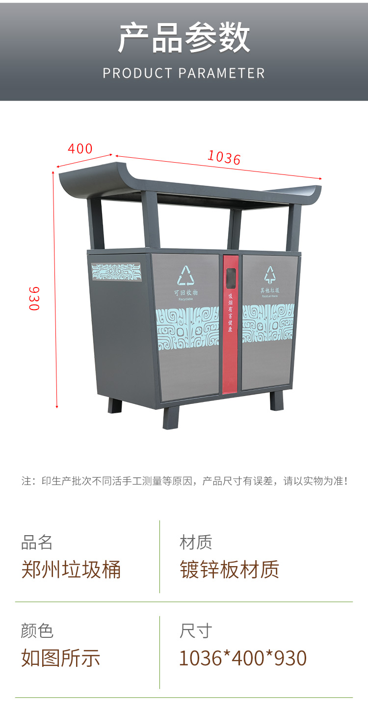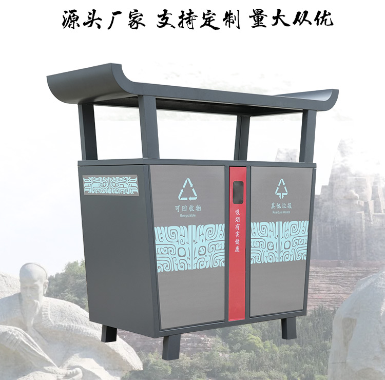 【品名】三分類垃圾桶  【品牌】 中星  【材質(zhì)】優(yōu)質(zhì)鍍鋅板  【內(nèi)膽】鍍鋅板、不銹鋼  【制作工藝】選用優(yōu)質(zhì)不銹鋼鋼板裁剪、壓制、折彎后再焊接而成型  【噴涂工藝】垃圾桶經(jīng)磷化噴砂處理后采用戶...