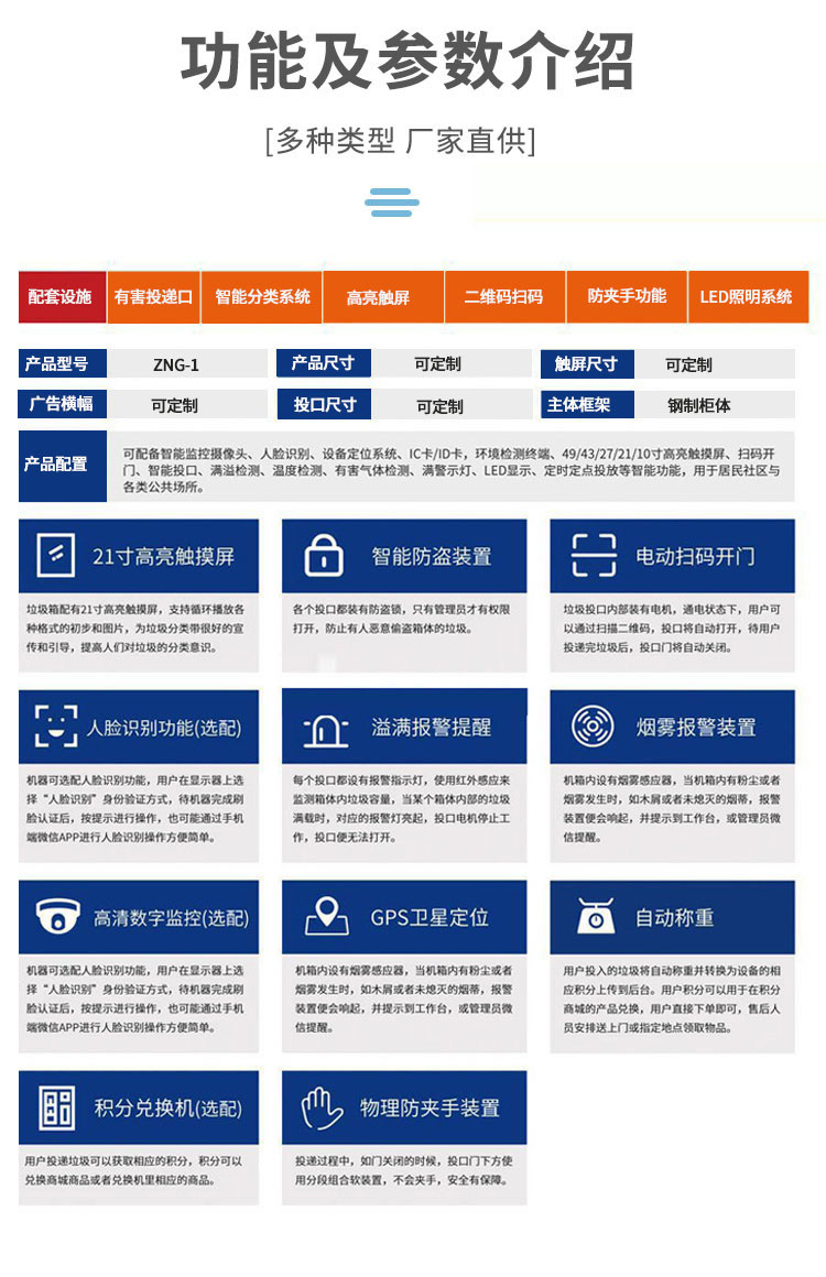 【品名】三分類垃圾桶 【品牌】 中星 【材質(zhì)】優(yōu)質(zhì)鍍鋅板 【內(nèi)膽】鍍鋅板、不銹鋼 【制作工藝】選用優(yōu)質(zhì)不銹鋼鋼板裁剪、壓制、折彎后再焊接而成型 【噴涂工藝】垃圾桶經(jīng)磷化噴砂處理后采用戶...