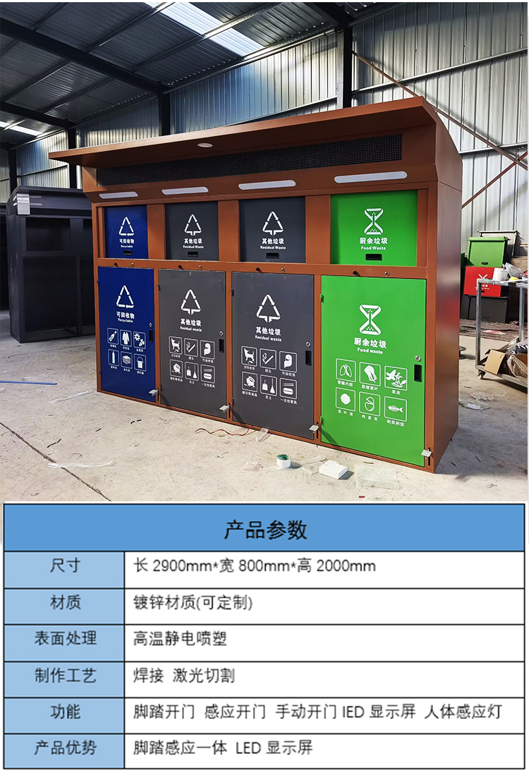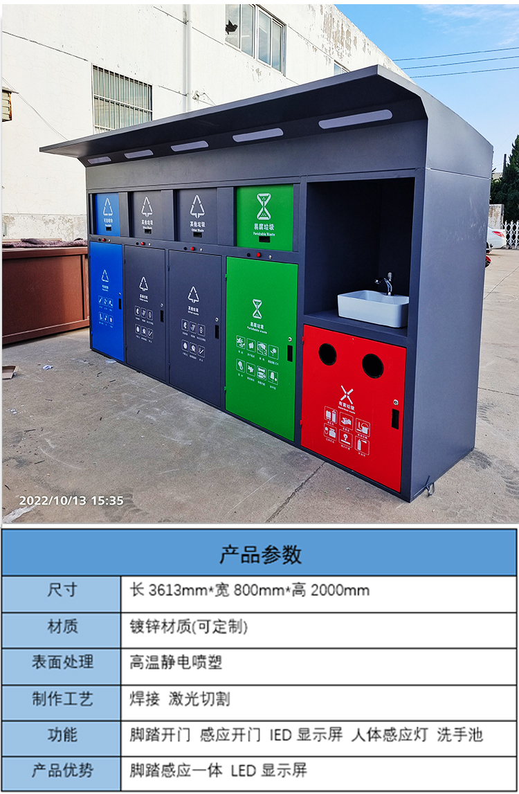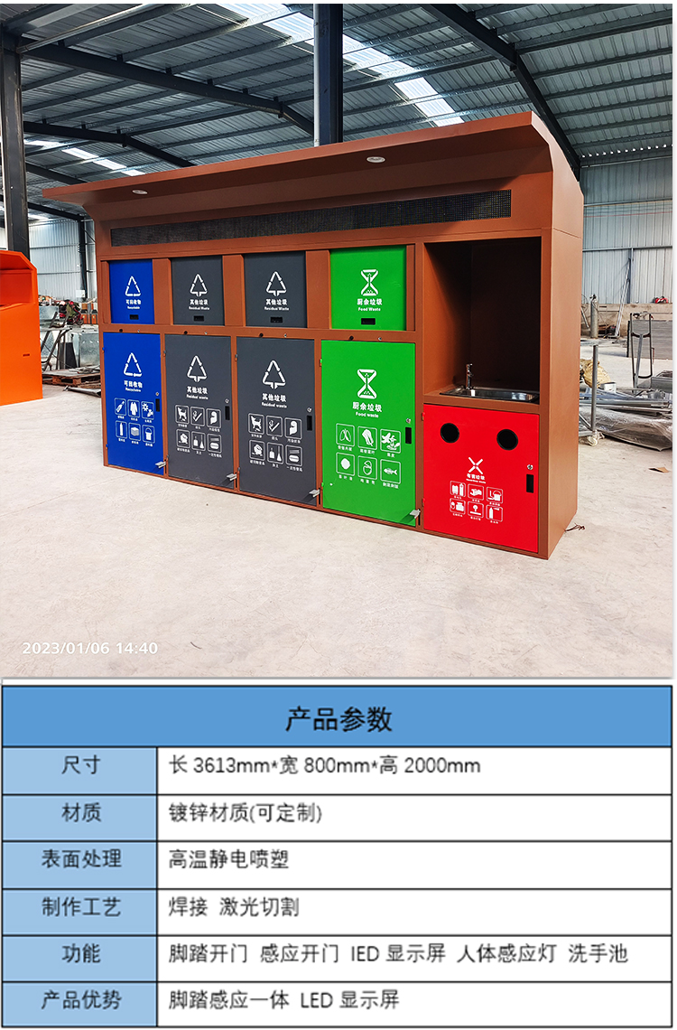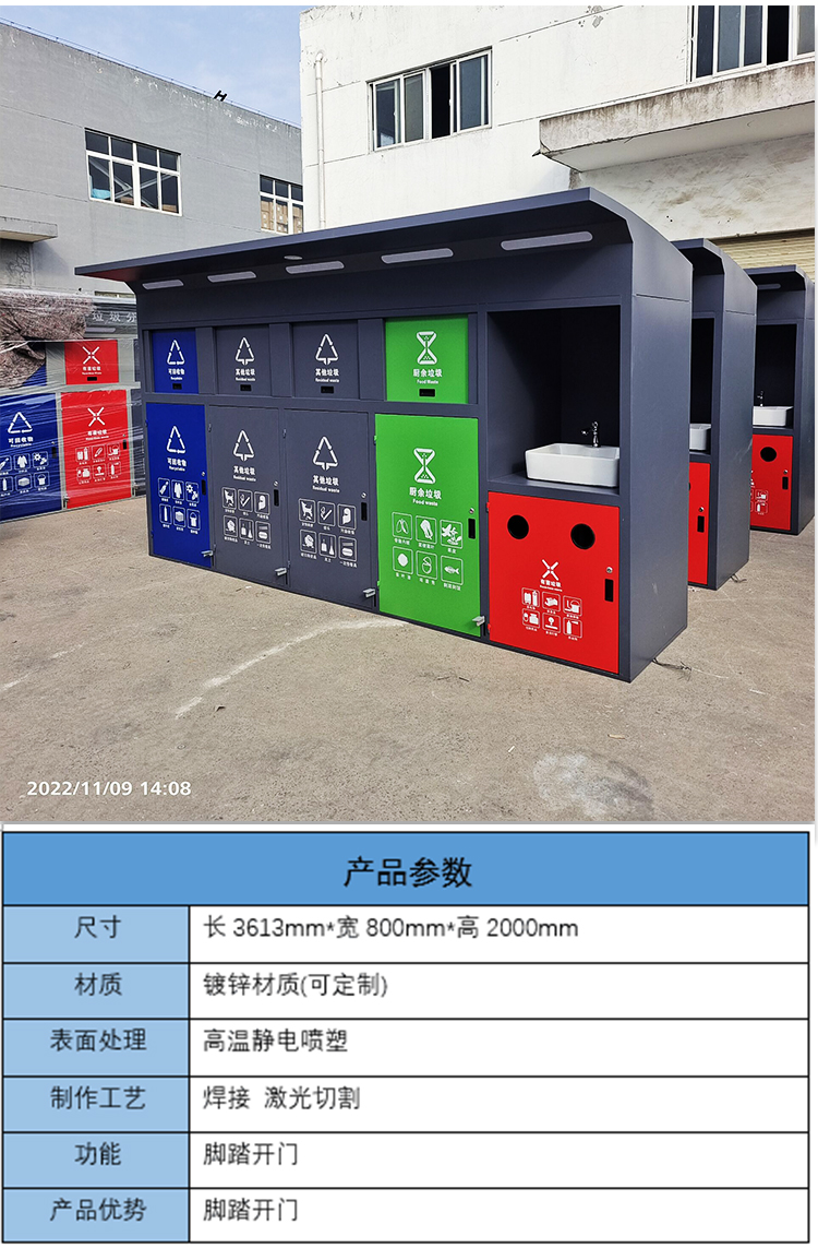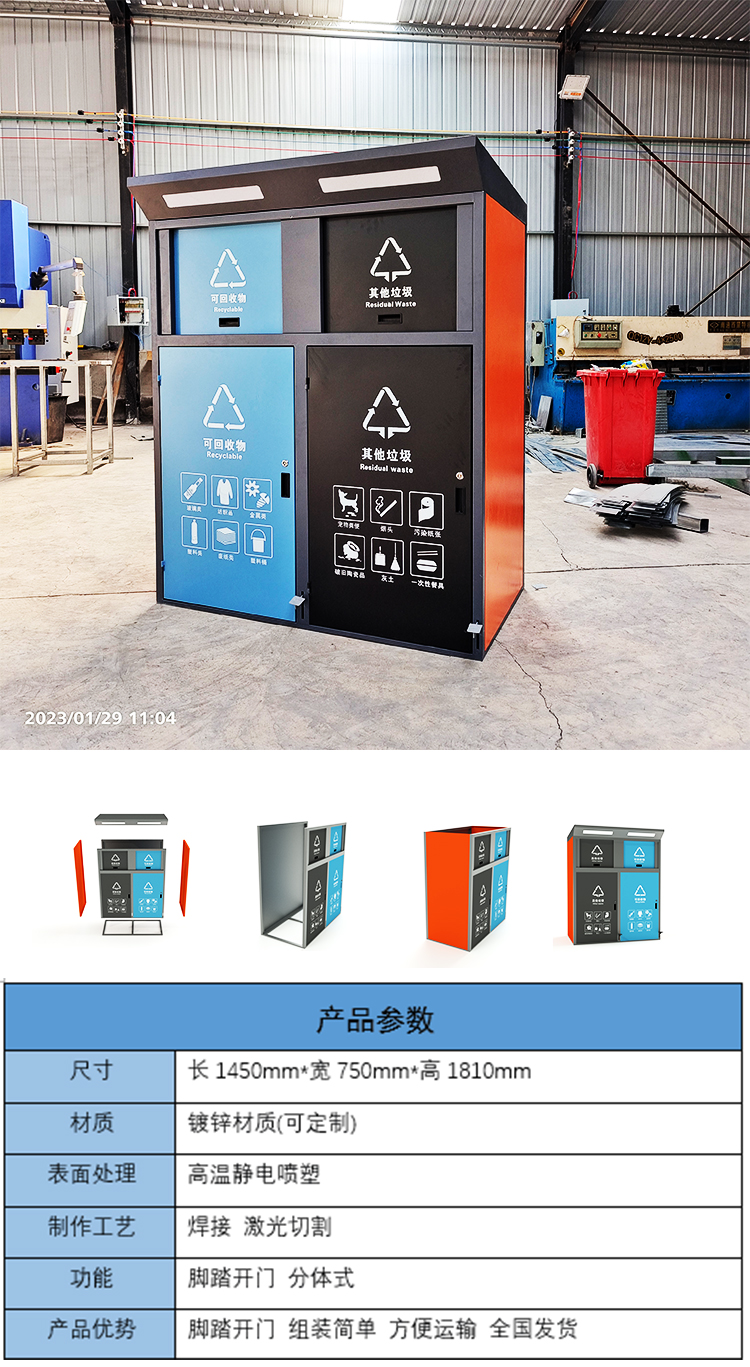 【品名】三分類垃圾桶 【品牌】 中星 【材質(zhì)】?jī)?yōu)質(zhì)鍍鋅板 【內(nèi)膽】鍍鋅板、不銹鋼 【制作工藝】選用優(yōu)質(zhì)不銹鋼鋼板裁剪、壓制、折彎后再焊接而成型 【噴涂工藝】垃圾桶經(jīng)磷化噴砂處理后采用戶...
