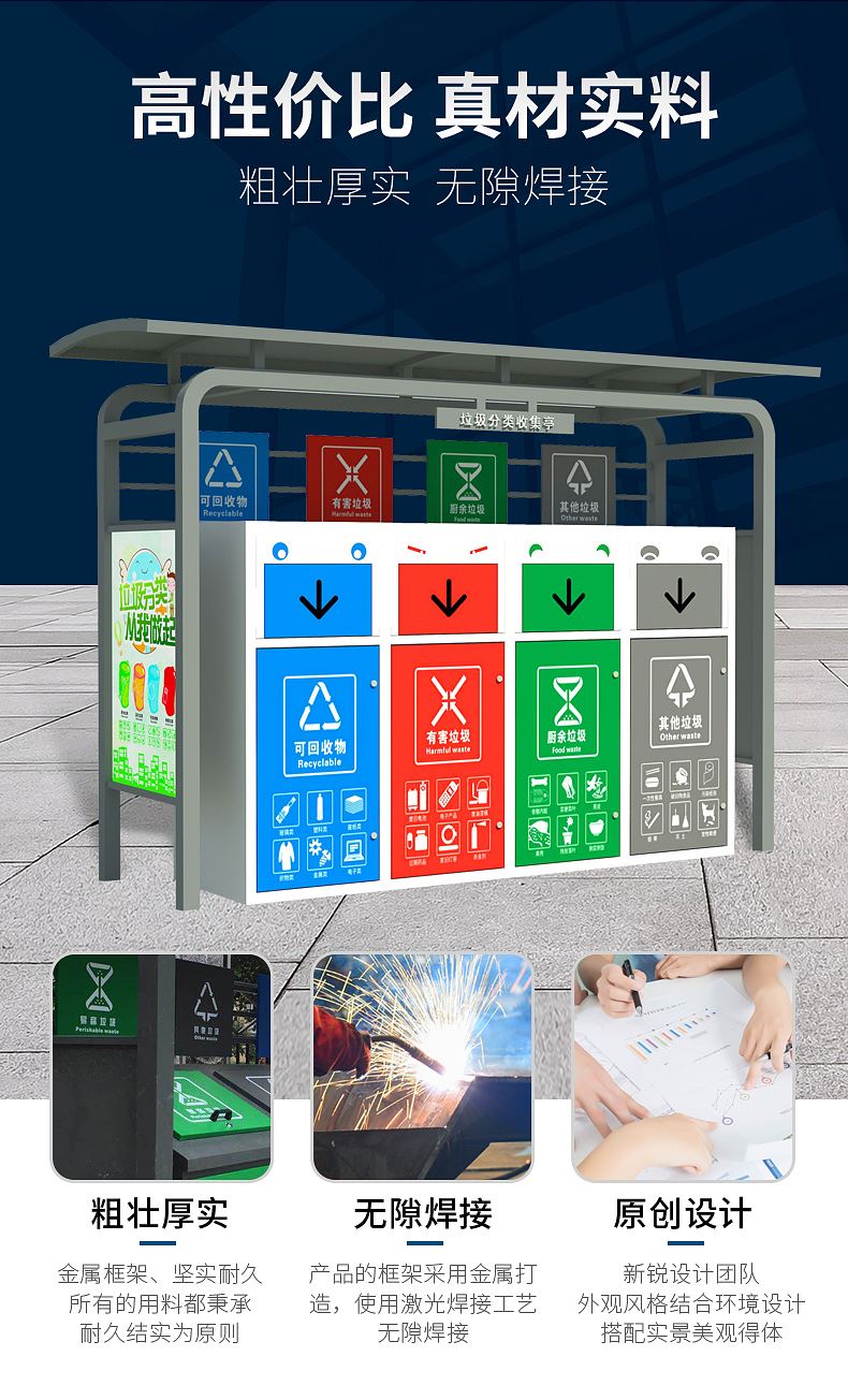 【品名】三分類垃圾桶 【品牌】 中星 【材質(zhì)】優(yōu)質(zhì)鍍鋅板 【內(nèi)膽】鍍鋅板、不銹鋼 【制作工藝】選用優(yōu)質(zhì)不銹鋼鋼板裁剪、壓制、折彎后再焊接而成型 【噴涂工藝】垃圾桶經(jīng)磷化噴砂處理后采用戶...